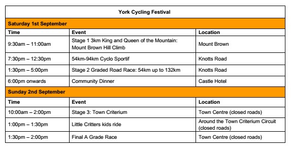 For further information about the York Cycling Festival, visit www.element.asn.au/event-profile/york/
