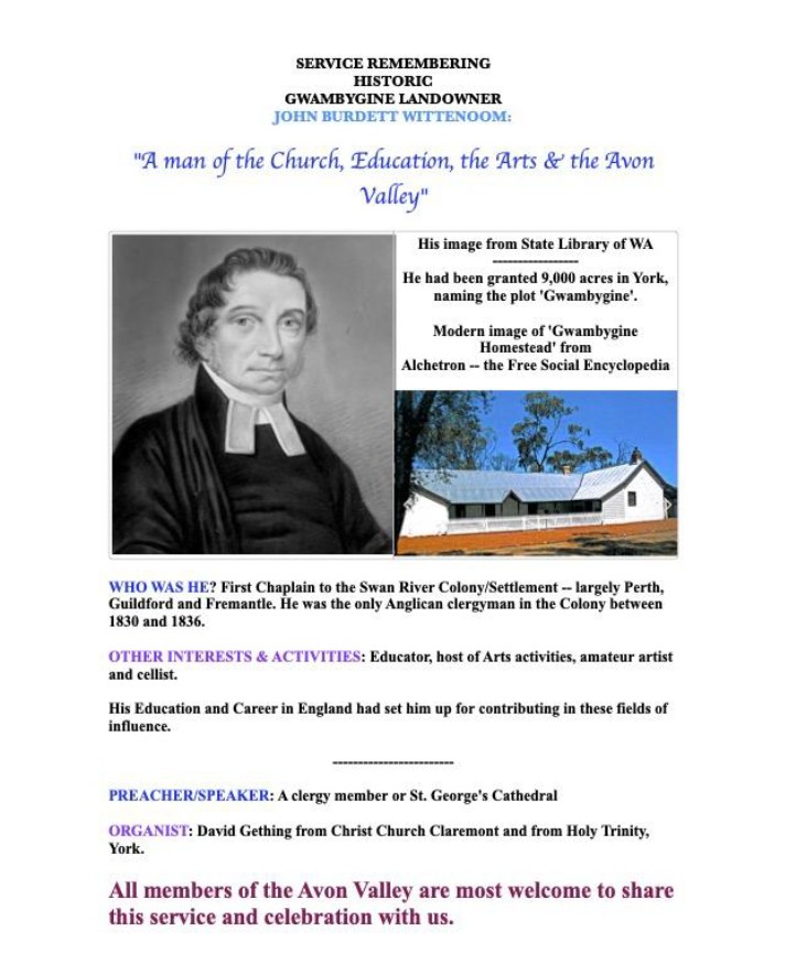 Service Remembering Historic Gwambygine Landowner Rev'd John Burdett Wittenoom