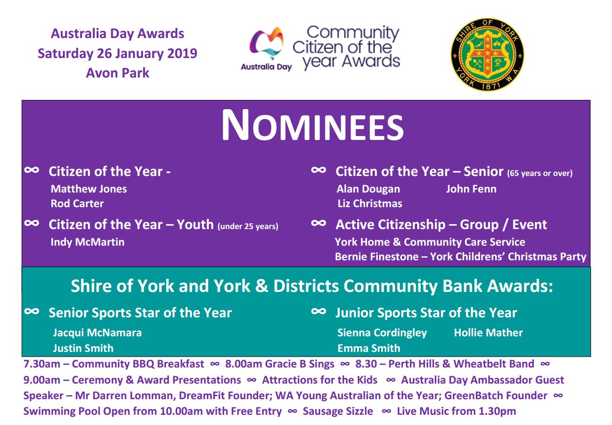 Australian Day Awards and Celebrations from 7.30am at Avon Park