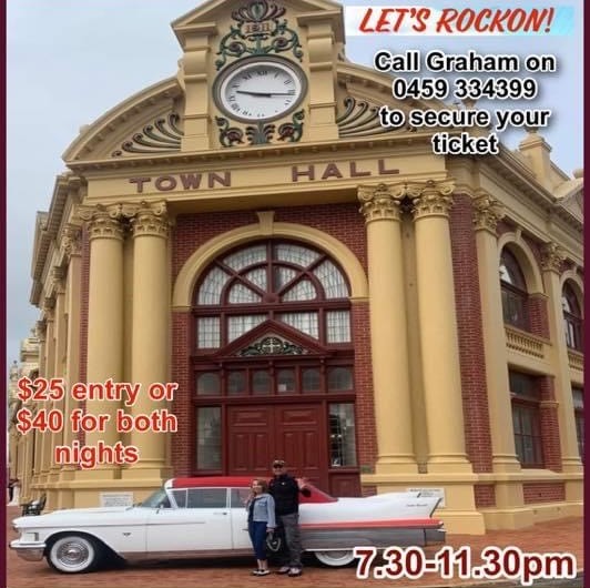 The main dance will be held on the Saturday 31st August 2024 for $25pp at the Town Hall again with the amazing band "Rebound" and supported by "Best Friends" which will also start at 7:00 pm and run through till 11:30 pm. Tickets for the Saturday event can be purchased through Graham on 0459 334 399.