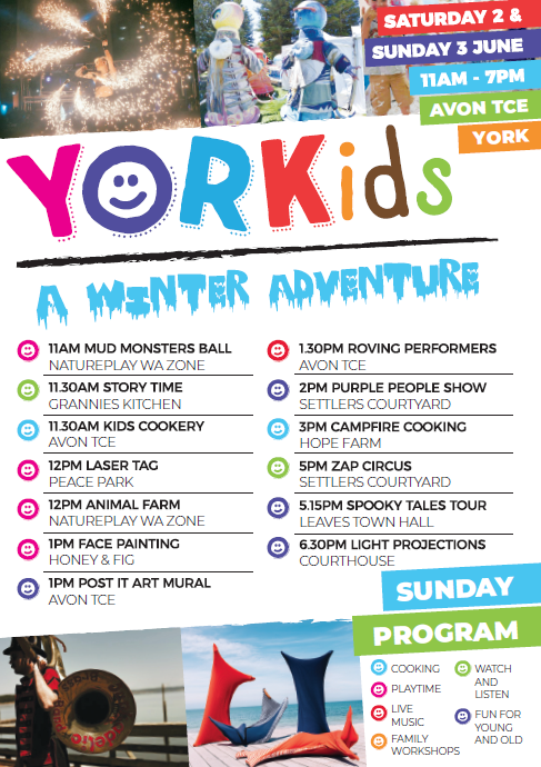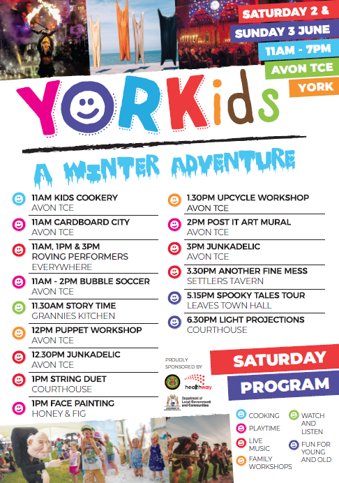 The event is made possible by support from the Shire of York, Heathways and the Department of Local Government and Communities.