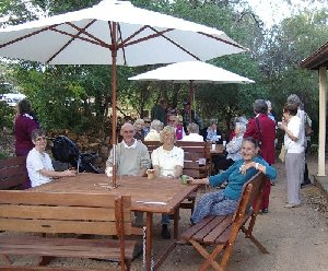 Enjoy the restful atmosphere beneath the tall gums in our courtyard at the foothills of Mount Brown.
